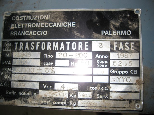 Quello che ho trovato si riferisce ad un vecchio (costruzione 1987) trasformatore in olio da 200 kVA.