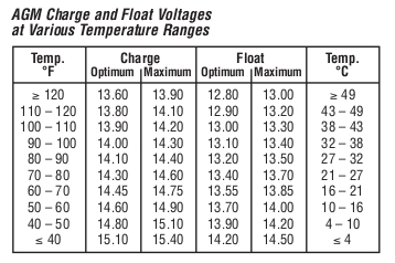 Vi allego una tabella di carica di una batteria AGM trovata in rete, non ho trovato quella relativa alla sua desolfatazione durante la ricarica, ma non si può avere tutto dalla vita