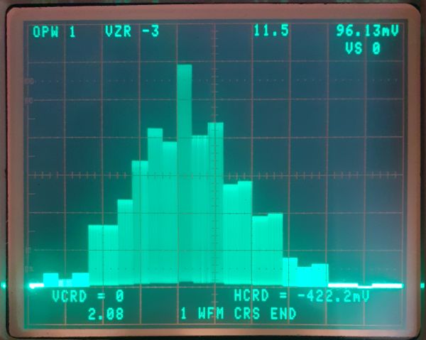 Tramite il Tek7854 abbiamo ottenuto un istogramma, che viene riproposto qui per comodità del lettore.