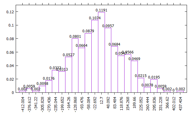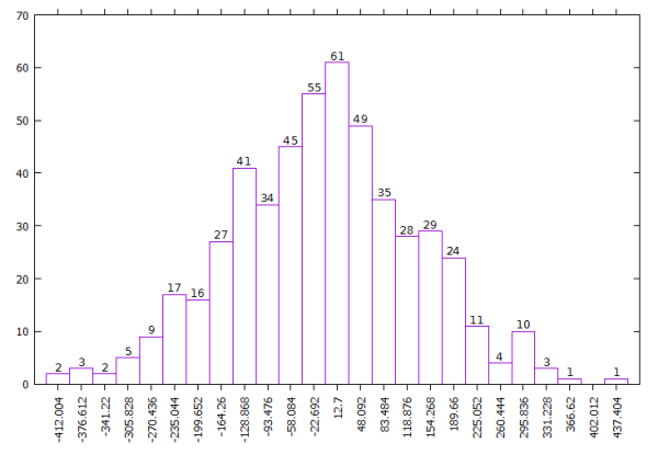 Ecco un nuovo istogramma, creato con gnuplot e con le scale correttamente rappresentate: