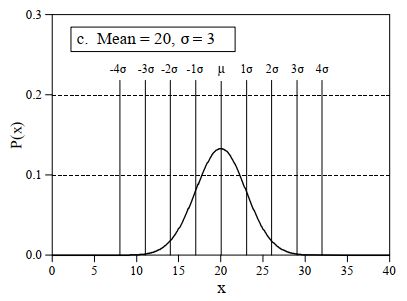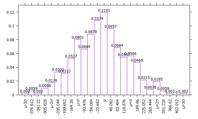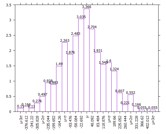 Di seguito vi è un altro istogramma, identico al precedente ma con evidenziati gli intervalli di σ: