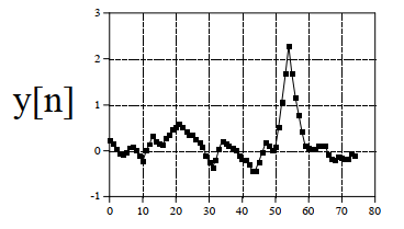 che mostra una forte correlazione (indicata dal picco) tra il 50esimo e il 60esimo campione; attenzione che stiamo parlando di correlazione: l'ampiezza del picco è un dato statistico, non un'ampiezza fisica come una tensione o una potenza. Con un gioco di parole, potremmo dire che il picco della correlazione è direttamente correlato all'ampiezza del segnale ricevuto in corrispondenza di quel campione. Di fatto la correlazione andrebbe normalizzata, in maniera che essa vari tra +1 e -1. Un valore prossimo a 1 indicherebbe una forte correlazione in quel campione (o punto); un valore prossimo a -1 indicherebbe che i due segnali sono completamente scorrelati.