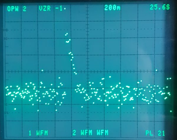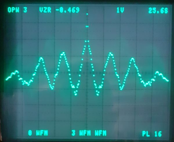 Come si vede è molto simile a quello precedente che, ricordo, è una fotografia dello schermo del 7854 che ha generato da solo l'istogramma partendo dai campioni acquisiti nel dominio del tempo.