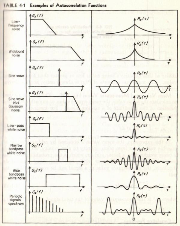 Intanto, per avere qualche riferimento pratico, di seguito vi è una tabella che rappresenta le funzioni di autocorrelazione più comuni, per segnali continui, non discreti.