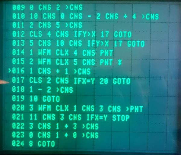 Purtroppo il linguaggio non era di per sé un vero e proprio linguaggio, ma piuttosto memorizzava la sequenza di tasti, esattamente come una calcolatrice. Il risultato (aggiungendo il fatto che operava con la RPN) è una sequenza di istruzioni decisamente criptica e per di più "contorta", dato che non aveva istruzioni di controllo del flusso di esecuzione a parte il famigerato GOTO (argh...).