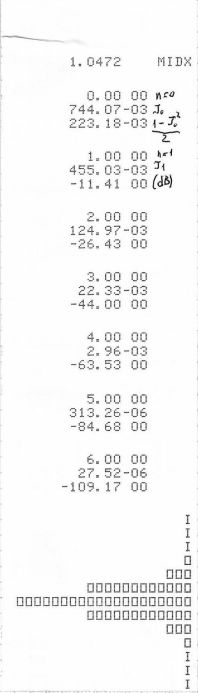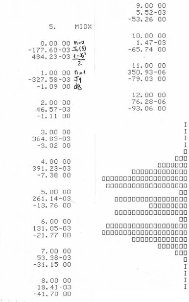 In questo caso metà della potenza è impegnata nelle prime 3 bande laterali (si esamini la stampa di J3: la potenza residua da J4 in avanti è