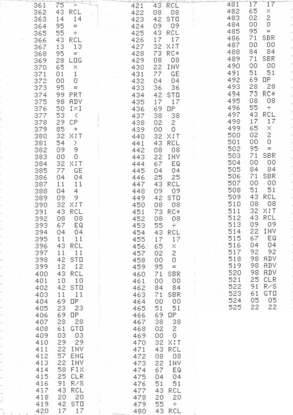 Per chi non possieda una calcolatrice TI-59, riporto di seguito una semplice implementazione dell'algoritmo discusso in precedenza. Il programma è stato scritto e provato utilizzando il QuickBasic 4.5 della Microsoft, giusto per restare in tema di retrocomputing..
