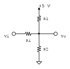 Si può generalizzare il risultato ottenuto per ottenere un level shifter passivo che attenui e riconduca il segnale entro due livelli stabiliti, con il seguente circuito: