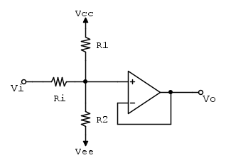 VCC e VEE sono due tensioni di riferimento, la prima positiva e la seconda negativa. Il segnale desiderato in uscita sarà VEE < Vo < VCC.