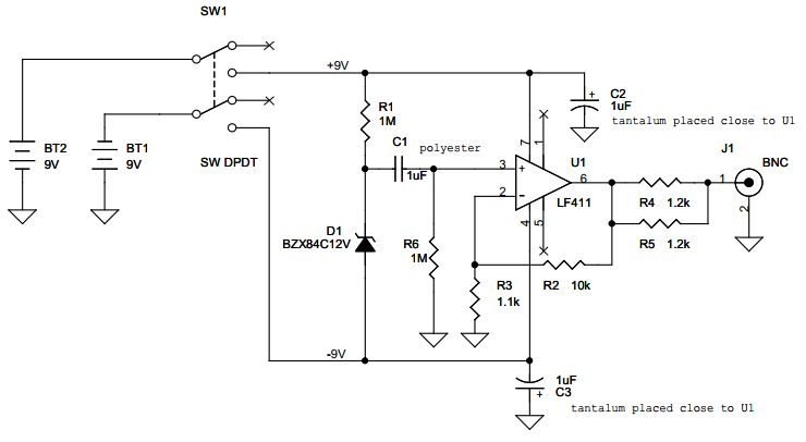 L'op-amp è un LM411 che già avevo e che è lo stesso utilizzato da Hageman; secondo il datasheet ha una tensione di rumore equivalente (all'ingresso) di