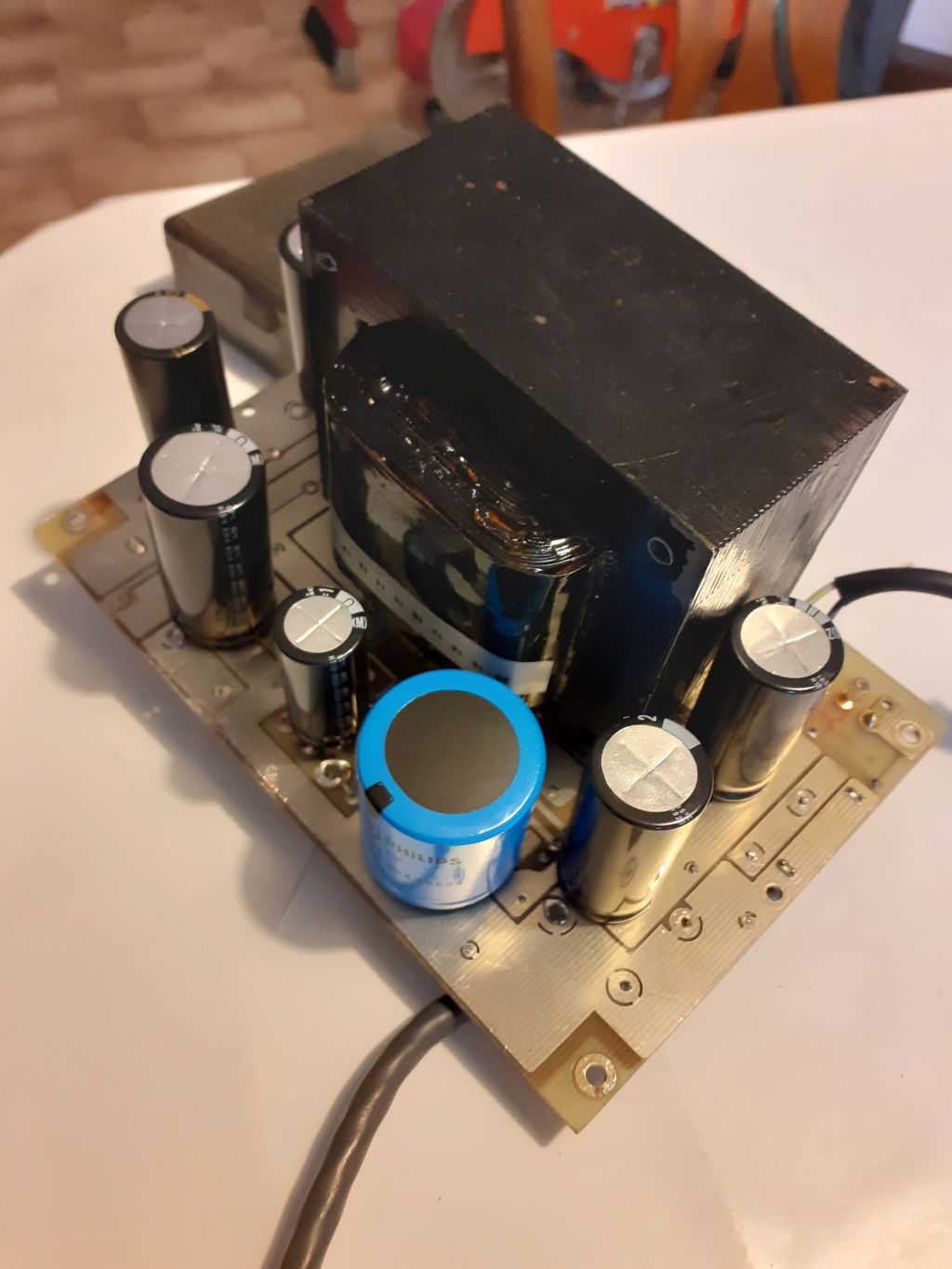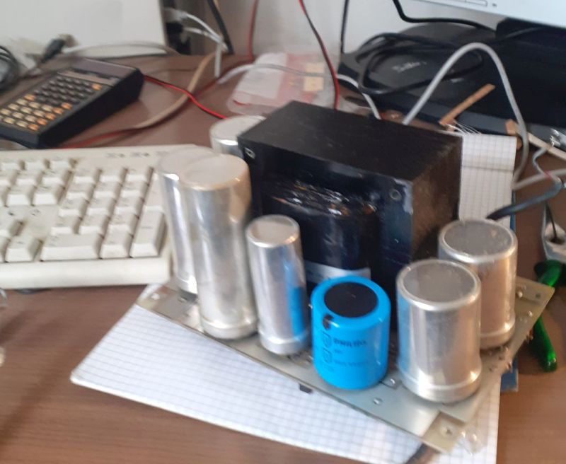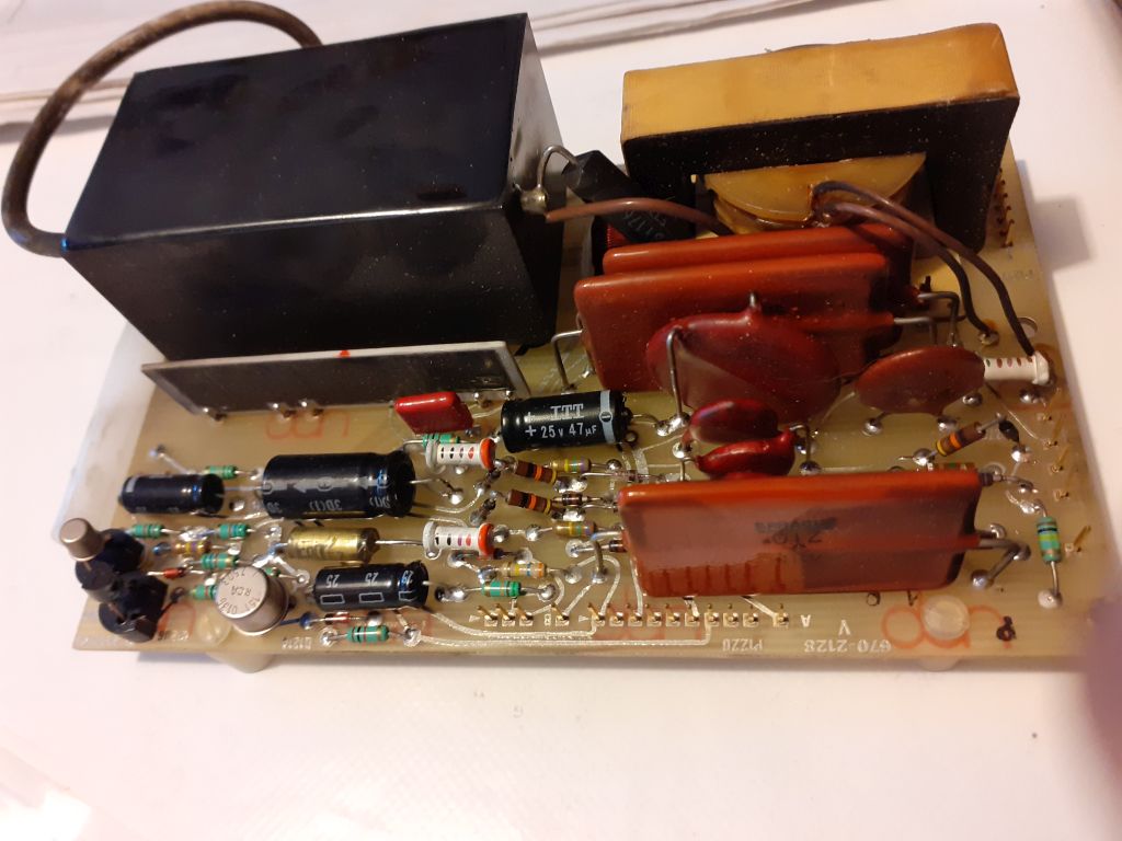 Sostituiti tutti con altri moderni. Sono a montaggio verticale, dato che i condensatori elettrolitici assiali sono oramai una rarità: