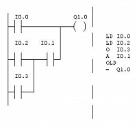 A = and (combina il valore di bit tramite "and") O = or (combina il valore di bit tramite "or") LD = load (carica il valore di bit) AN = andnot (combina il valore di bit negato tramite "and") ON = ornot (combina il valore di bit negato tramite "or") LDN = loadnot (carica il valore di bit negato) [...] -