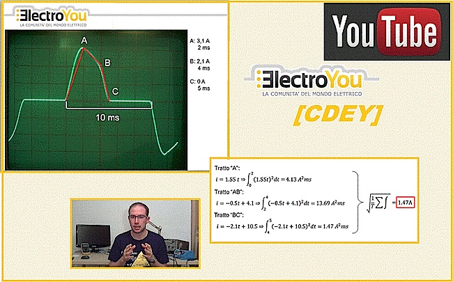 In questo video voglio far "vedere" la forma d'onda di corrente al secondario di un trasformatore, al fine di calcolare manualmente il valore efficace (altrimenti noto come R.M.S., root mean square, per fare gli anglofili) e stimare le prestazioni in corrente del trasformatore.