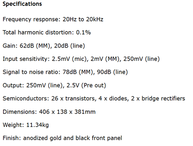 Di seguito le principali caratteristiche del preamplificatore, il cui Service Manual è facilmente reperibile in rete,