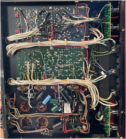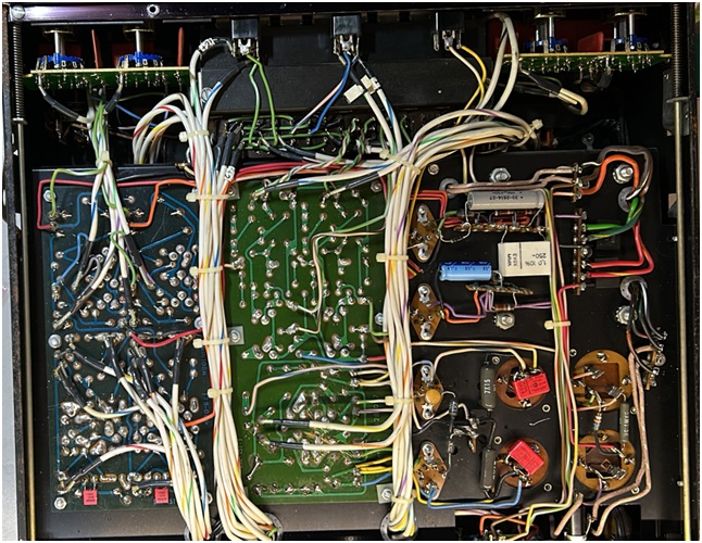 Tutto il circuito di preamplificazione, invece, è realizzato su due schede a circuito stampato, in bachelite singola faccia, con uno stile appropriato per l'epoca.