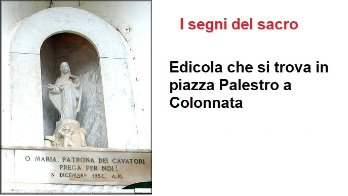 Caratteristica di questi posti, lungo le strade, sopratutto negli incroci, e' la presenza di edicole con immagini sacre, realizzate in marmo da valenti artigiani anche se ormai sono quasi tutte rovinate dal tempo o dai vandali.