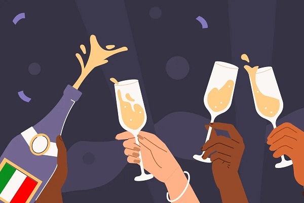 Dalla cabina del Comandante uscì, come per magia, una cassa piena di bottiglie di colore scuro contenenti un liquido dorato, che, quando versato in leggerissimi bicchieri di vetro, produceva delle piccolissime bollicine di gas che salivano lentamente fino a disperdersi sulla superficie.