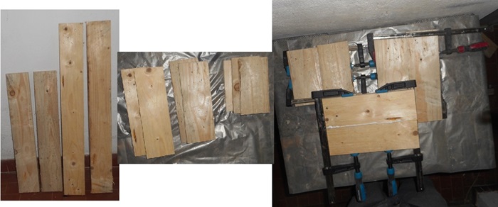 Prima un abbondante spessore di colla su i due lati da unire, poi ho unito le due tavole usando dei morsetti da falegname e dopo tre ore la tavola era pronta.