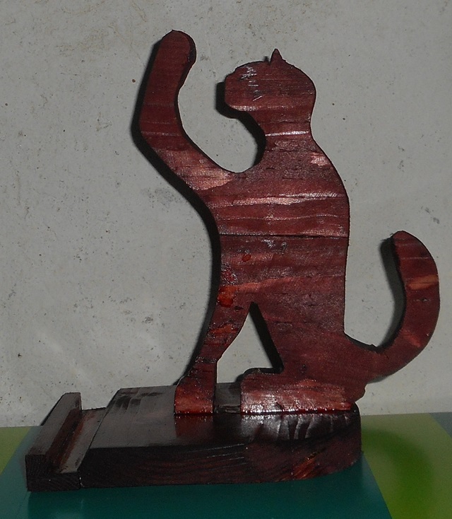Oggi quasi tutti posseggono uno o più smartphone, ma inevitabilmente sono spesso a zonzo sulla scrivania o suoi tavoli della casa, allora specialmente per i possessori multipli di questo fastidioso compagno di vita, ho pensato ad un oggetto semplicissimo, una silhouette stilizzata di un gatto che con una zampa sorregge lo smartphone.