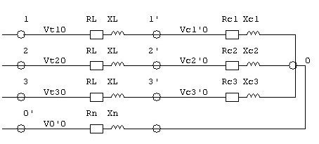 Nella ipotesi 2, neutro con impedenza uguale a zero, allo scopo di evitare l' overflow del calcolo si è impostato nel listato del programma un valore molto basso di resistenza e reattanza del neutro pari a 1*10^-6 ohm/Km.