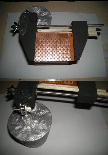 Oggi mentre usavo la mia di terza mano le pinzette che sorreggevano i pezzi hanno ceduto piegandosi e la cosa mi ha infastidito non poco , allora mi sono messo a cercare in rete se ci fossero altri tipi di terze mani migliori , ne ho trovata una che si chiama Panavise JR ed ha due ganasce che mantengono con presa forte la PCB e non la fanno cadere , quindi ho deciso di comprarla ma il prezzo compreso le spese spedizione era proibitivo , allora guardando in giro per casa ho racimolato dei pezzi che mi hanno permesso di assemblare una copia funzionante senza spendere un euro.Se siete genovesi questo fa per voi.