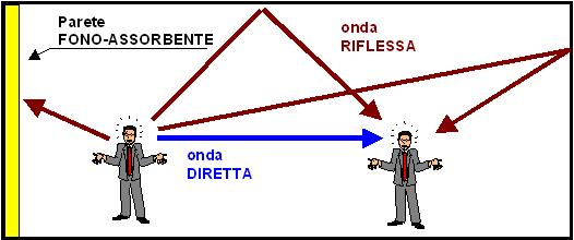 "In un ambiente chiuso, il suono in un certo punto è dato dalla sovrapposizione del suono diretto (onde sonore che arrivano direttamente all’orecchio di chi ascolta) e dal suono riflesso (onde sonore che prima di arrivare all’orecchio di chi ascolta rimbalzano una o più volte sulle pareti), come schematizzato nel disegno seguente: