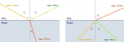 - v1 e v2 sono le velocità di propagazione dell'onda nei due mezzi.