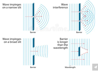 La diffrazione avviene quando un'onda incontra un ostacolo o una fessura di dimensioni inferiori alla lunghezza d'onda. E' un fenomeno ondulatorio e dipende dalla frequenza: l'ostacolo agisce come una nuova sorgente di onde secondarie, permettendo all'onda di aggirarlo. Questo spiega, ad esempio, come il suono e la luce possano propagarsi anche dietro un angolo. Con due o più fessure vicine si genera anche interferenzaDiffusione (Scattering)