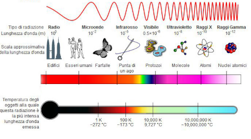 | Infrarosso (IR) | 300 GHz – 400 THz | 700 nm – 1 mm |
