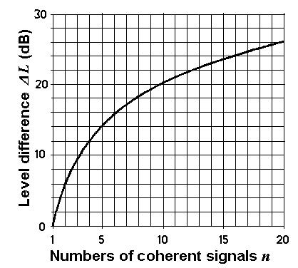 Se si sommano n segnali uguali e coerenti l'incremento di livello è mostrato nella figura:
