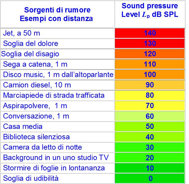 I valori in dB (chiamati dBSPL per ricordare il riferimento al sound pressure level) dei livelli Lp e LI rispettivamente sonoro e di intensità sonora sono: