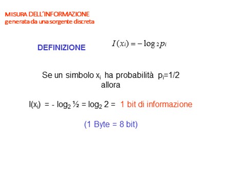 il secondo, che due eventi indipendenti danno quantità di informazione che si sommano. Il bit è l’unità per misurare l’informazione e corrisponde all’informazione prodotta quando si verifica uno tra due eventi equiprobabili.