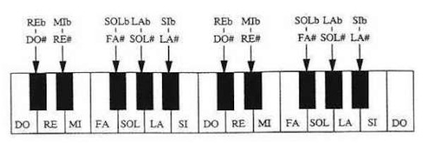 I tasti neri del pianoforte sono quindi le note alterate con # o con b ma ciò non riguarda l'intervallo Mi - Fa né quello Si - Do, perché sono dei semitoni nativi.
