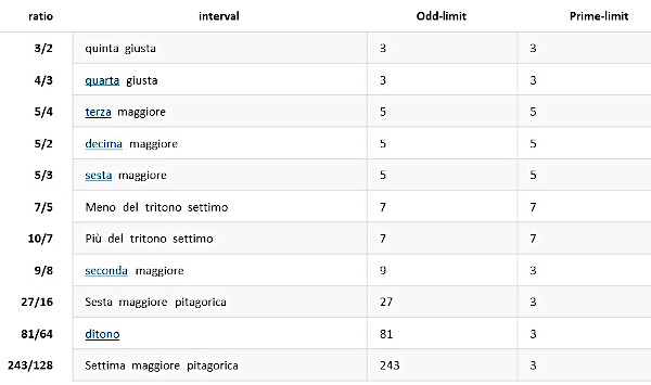Nel 1558 Gioseffo Zarlino, il più grande teorico della musica nel rinascimento, fissò l'altezza dei suoni della scala diatonica proseguendo la teoria fisico-numerica della scuola pitagorica, la quale, com'è noto, aveva posto un limite alla generazione dei rapporti iniziali (2/1, 3/2) in base alla teoria esoterica della tetraktys, quindi non considerava rapporti tra i suoni con numeri generatori superiori o uguali a 4; ciò significa che un rapporto deve formarsi solo con il prodotto (2p)*(3q)con p e q interi (positivi, 0, o negativi); ad esempio 81/64 = (2-6)*(34). Tale teoria era allineata, in maniera del tutto inconsapevole, con quella fisica degli armonici naturali, ossia i possibili modi naturali di vibrazione sonora di un corpo.