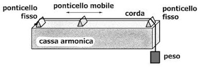 La testimonianza più antica sulla nascita delle note musicali pare sia quella di Severino Boezio, filosofo e senatore romano vissuto tra il V e il VI secolo d.C., che narra del monocordo, uno strumento presente nell’antica Grecia, costituito da una sola corda con un ponticello scorrevole che permette di variare la lunghezza della corda stessa, con il quale Pitagora compì alcuni esperimenti di acustica.Egli notò che dimezzando la lunghezza della corda si otteneva un suono praticamente uguale a quello della corda intera ma più “acuto”, o più “alto”. Ma notò anche che riducendo la lunghezza della corda a 2/3, questa lunghezza produce un suono che “si accoppia bene” con quello prodotto dalla corda intera, ossia è “con-sonante”: l’insieme dei due suoni simultanei risulta piacevole all’ascolto. Se questi 2/3 di corda si riducono ancora a 2/3 si ottengono (2/3)*(2/3)=4/9 della corda intera, che generano un suono più alto dell’ottava, perché 4/9 <1/2. Ma è sufficiente raddoppiare questa lunghezza per ottenere 8/9. Naturalmente Pitagora non conosceva la frequenza, un concetto che si è formato con la scienza post-rinascimentale. Per noi però, basta invertire la frazione per passare dalla lunghezza alla frequenza, concetto assai familiare, perché come abbiamo visto all’inizio, la frequenza di oscillazione di una corda è inversamente proporzionale alla sua lunghezza.
