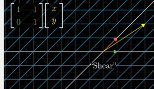 Se applichiamo prima la Rotation al vettore [x, y], ossia moltiplichiamo la matrice Rotation per il vettore [x, y], otterremo un vettore uguale ma ruotato di 90°. Se a questo vettore applichiamo la Shear otteniamo il vettore trasformato
