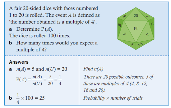 Se la probabilità di un evento è P, facendo n prove (trials) ci si aspetta che l’evento si presenti nP volte. (Fair dice è un dado non truccato)