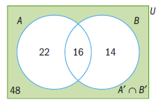 n(A’) =n(U)-n(A) --> = 100-38 = 62