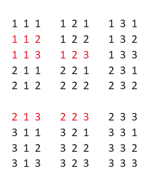 Consideriamo una scatola che contiene 3 schede (marble) rosse (R), 2 blu (B) e 1 gialla (Y). Se peschiamo due schede, possiamo farlo: