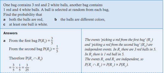 Per esempio, consiederiamo l'esperimento "lancio di una moneta e di un dado", il lancio della moneta non influenza il risultato del lancio del dado. Se H (Head) = "esce testa" e T (Tail = coda) = "esce croce", si ha che P(H) = P(T) = 1/2 = 50%.