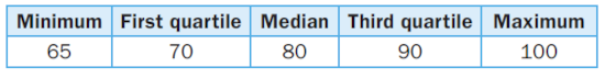 Se non si conoscono i singoli punteggi, la tabella dice che metà dei punteggi sono sotto 80 e l’altra metà sopra 80. Inoltre, dice che il 50% dei punteggi sono compresi tra 70 e 90. Il range è 35.