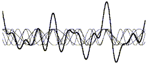 forme d'onda di un accordo consonante fatto di 3 suoni (linea spessa = somma dei 3 suoni, linee sottili singoli suoni)
