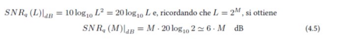 Ad esempio utilizzando una quantizzazione a 16 bit otteniamo un SNR di 96 dB.