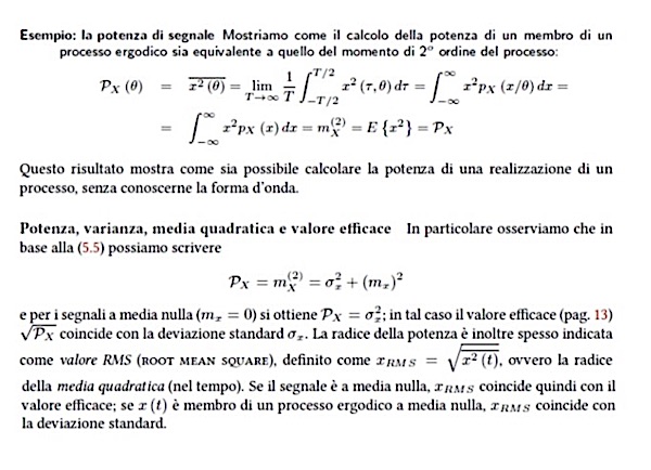 Questo risultato è molto importante, perchè per fortuna la maggioranza dei segnali che trattiamo nelle TLC rientrano nella categoria dei processi ergodici.