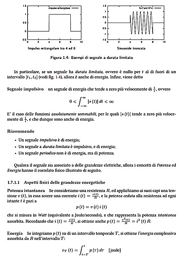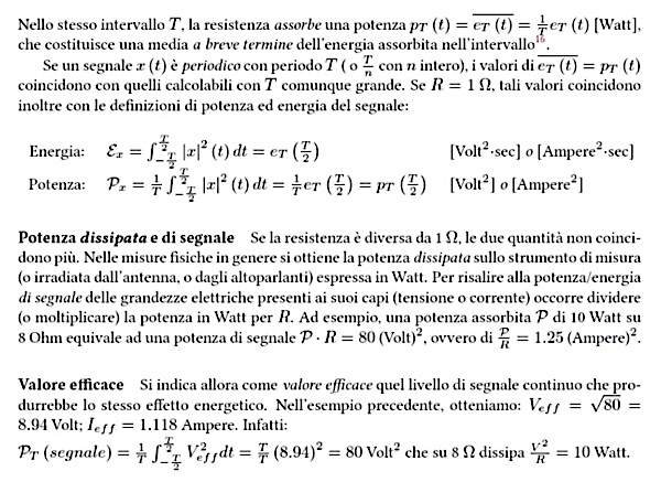 La seconda parte (che non è l'ultima) di questo Bignami inizia affrontando i segnali "non certi", non deterministici; un segnale deterministico è ad esempio y = sin(t) perchè per ogni istante t il valore di y è conosciuto. Nella realtà delle telecomunicazioni, infatti, i segnali deterministici sono una rara eccezione. Sono di gran lunga più presenti i segnali aleatori, o "casuali" come quelli che sono generati da una conversazione telefonica. Ma prima di proseguire è necessario chiarire un aspetto che spesso sfugge e cioè la distinzione tra Segnali di Potenza e Segnali di Energia e che avrei dovuto aggiungere alla prima parte già pubblicata.