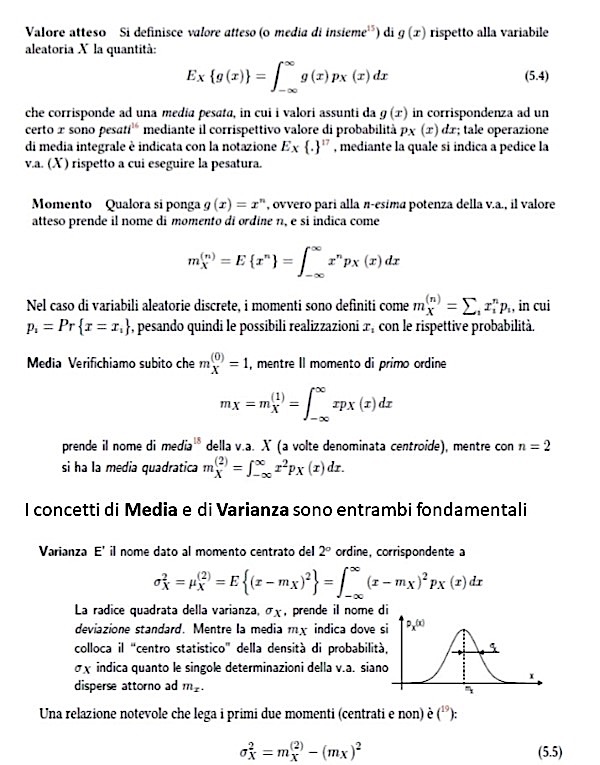 Alle variabili aleatorie sono associate operazioni utili nei calcoli statistici: Valore atteso, Momento, Media e Varianza