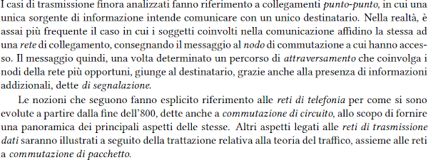Possiamo ora cercare di evidenziare alcuni aspetti rilevanti delle reti di trasmissione.