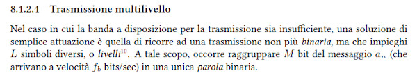 Non sempre però la corrispondenza è 1:1. Si hanno spesso casi in cui un segnale è a più stati e ogni stato, spesso chiamato "simbolo", rappresenta una certa quantità di bit e la velocità di trasmissione può essere espressa in simboli/secondo. Ciò significa che viene usata una codifica, ossia una corrispondenza tra numeri e segnali, in cui i segnali hanno forme di tipo impulsivo (segnali "di energia") ottenute con una codifica di linea. Quando i segnali hanno la stessa velocità dei dati e hanno la banda centrata sullo 0, si dice che la trasmissione è in banda base.
