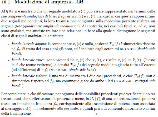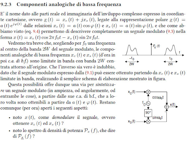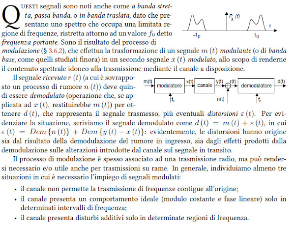 Come si ottengono queste "traslazioni" di banda? Risposta: effettuando modulazioni di ampiezza o di frequenza di una "portante" sinusoidale.