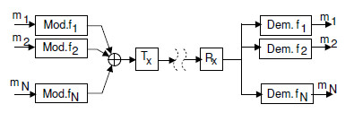 Multiplazione a divisione di frequenza FDM Si tratta della tecnica tradizionale per cui sono possibili più trasmissioni contemporanee che non interferiscono tra loro perché utilizzano bande di frequenza diverse centrate su frequenze diverse.